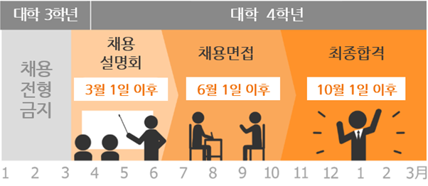 6월부터 기업들이 사실상 합격 통지인 ‘내내정’을 주고, 10월부터 정식 합격(최종 합격)인 ‘내정’(입사 예정)을 통지하는데요.