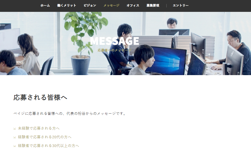 만약 베이지가, 크리에이터로서 일하기 시작하는 「첫 번째 회사」가 된다면, 우리는 그 책임을 받아들이고, 30대가 되어도 40대가 되어도 통하는, 일에 중요한 것을 제대로 가르쳐 가는가 해야 한다고 생각합니다.